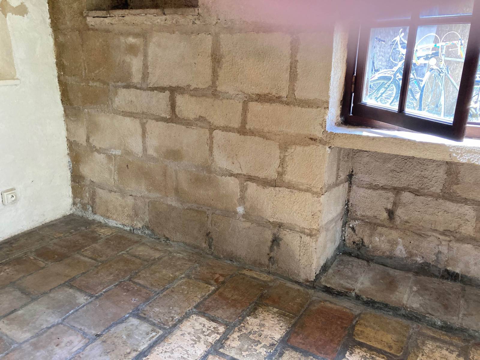 Notre diagnostic en humidité a révélé, outre une absence de renouvèlement de l'air par ventilation une humidité ascensionnelle qui mouille les tommettes, et qui par capillarité remonte dans les murs par les joints et par les pierres calcaires.