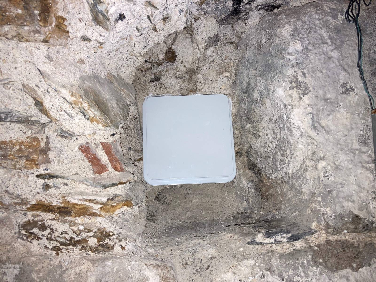 Pour éliminer les remontées capillaires fortes et anciennes de cette belle maison de village, nous avons le choix entre l'injection de résines hydrophobes à la base des murs ou bien d'éliminer les remontées capillaires en inversant la polarité de la molécule d'eau par des appareils IPE ou IPM. Le choix s'est porté sur l'installation d'un Inverseur de polarité de la molécule d'eau IPM.