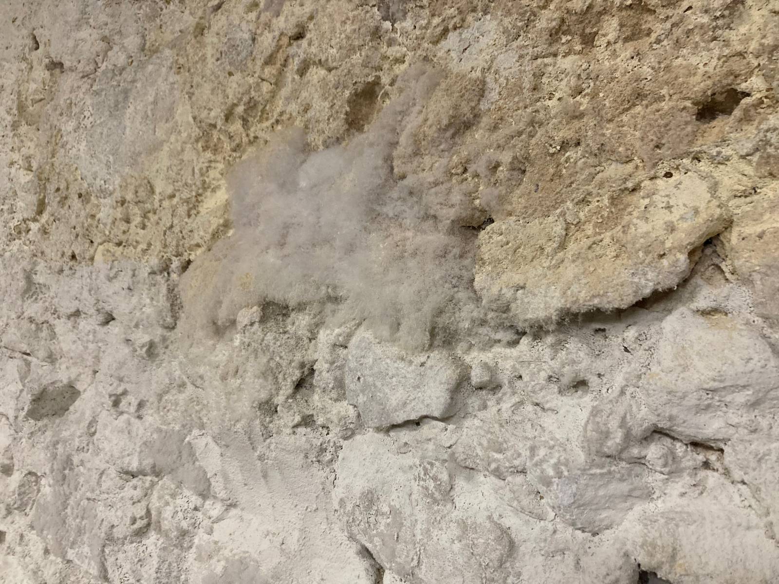Remontées capillaires ou infiltration : Les infiltrations d'eau dans les murs en pierre peuvent accélérer la dégradation en facilitant la migration des sels minéraux à l'intérieur des pierres. Lorsque l'eau s'évapore, les sels hygroscopique (salpêtre) peuvent cristalliser à la surface des pierres, ce qui contribue au farinage.