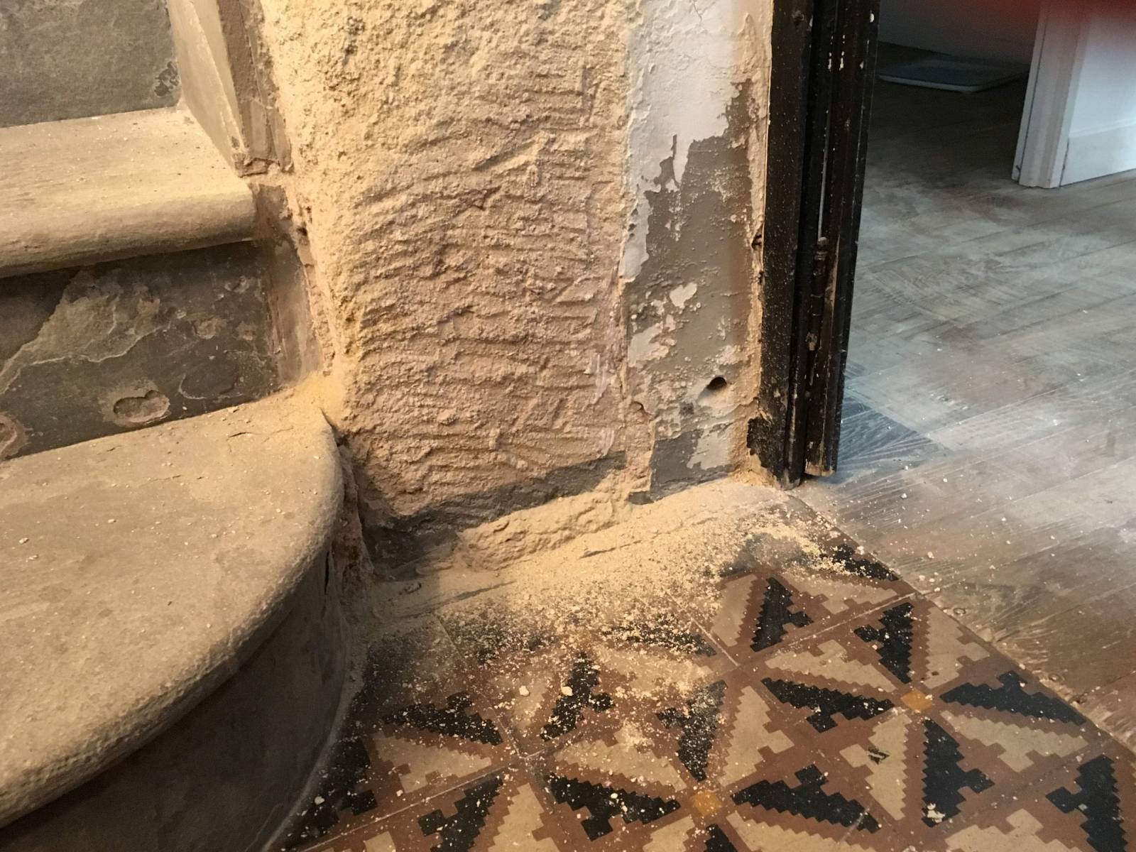 En accord avec le maître d’ouvrage, nous avons créé une barrière étanche à l’humidité ascensionnelle par injection d’hydrofuge de masse sous forme de résines. Ces résines sont insérées à basse pression (maxi 2 bars) afin d’éviter des dommages aux structures.