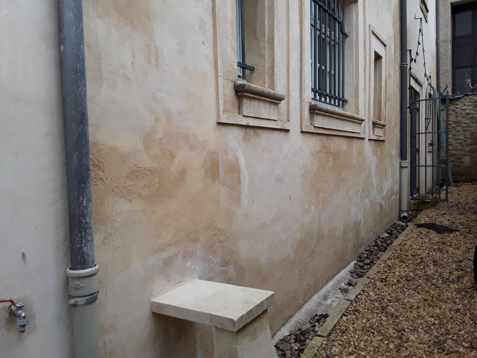 Pour traiter l'humidité qui remonte du sol par osmose naturelle (remontées capillaires) et qui entraine avec elle des sels hygroscopiques (salpêtre), qui provoque des tâches, auréoles blanches, sur les murs, nous avons proposé au maitre d'ouvrage deux solutions: