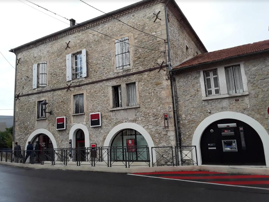 Les locaux qui abritent l’agence de la banque Société Générale de Pont Saint Esprit (30130) dans le Gard montrent de larges taches humides superposées d’auréoles blanchâtres de salpêtre.